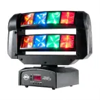 • Moving Head fixture with quick sweeping 8-Zone RGBA LED chase Dual LED Bars, each with 4 lenses, move independently