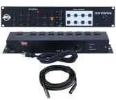 The American DJ Duo Station is the best solution to controlling any simple RGB LED par lights and effect lights you can get, a single controller.<br /> <br /> Broken up into 2 sections the left side controls all of the functions of the RGB LED par lights and has 9 quick presets that you can easily call up a standard color with the push of a button. This is great for running LED pars on a truss or even controlling scrim lights. I wouldn't use it for up lighting a room unless you are going to dedicate the unit for uplighting.<br /> <br /> The section on the right has 8 ON / OFF buttons that easily and quickly allow you to turn on and off each light plugged into the corresponding plug on the relay pack.<br /> <br /> The unit comes with a 25' DMX cable that plugs into the DMX in and that controls everything once you have power running to both units. You will need to run a DMX cable out to control any RGB LED par or wash lights. The controller does come with a power adapter...Yes another Wall Wart.<br /> <br /> All IN ALL this is a GREAT solution for on the fly controlling simple ON / OFF effect DJ lighting and 3 Channel RGB LED Washes and Light Bars without having to have a college degree in DMX addressing. <br />