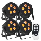 The Hex Par Pak includes four ADJ 5P Hex plus one ADJ Dotz Par RF Remote. The wireless remote may be used up to 75 feet / 25 meters and makes it easy for performers or lighting designers to change the color and take control of their Dotz Pars from a distance.