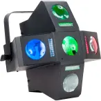 The higher output ADJ Monster Fun is a 2-FX-IN-1 DMX LED Moonflower + Strobe Lighting effect with 5 lenses and 4 strobe strips. This effect offers small clubs, bands, roller rinks and mobile entertainers the convenience of having multiple effects in one light show without having to transport multiple fixtures. Users can also use the easy-to-use UC-IR infrared remote control (sold separately) from ADJ to turn the unit On/Off and scroll through different programs.
