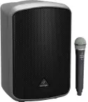 The Behringer Europort MPA200BT is a portable PA system that includes the company's Ultralink ULM300USB USB digital wireless system with a handheld dynamic microphone. The 8" woofer and high-resolution tweeter are driven by a Class-D amplifier capable of delivering 200W of power to audiences of up to 500 people at parties, schools, corporate and educational presentations, weddings, and more.