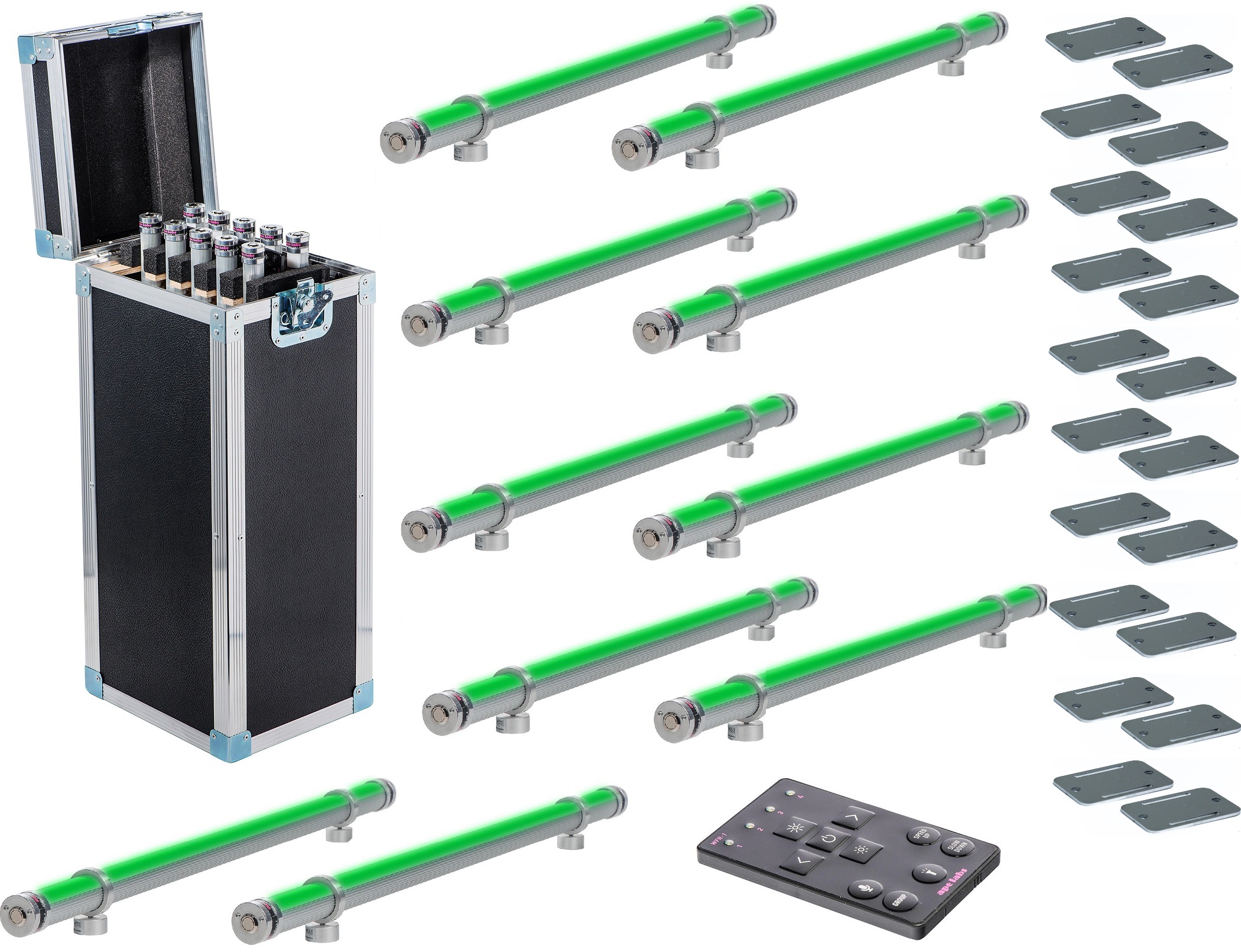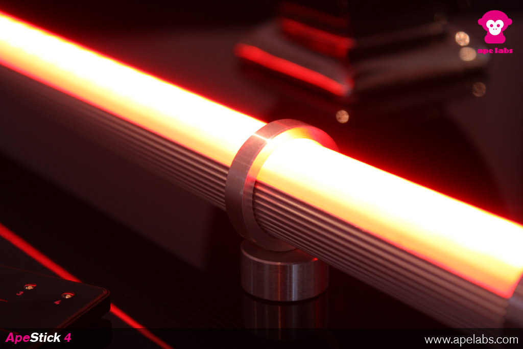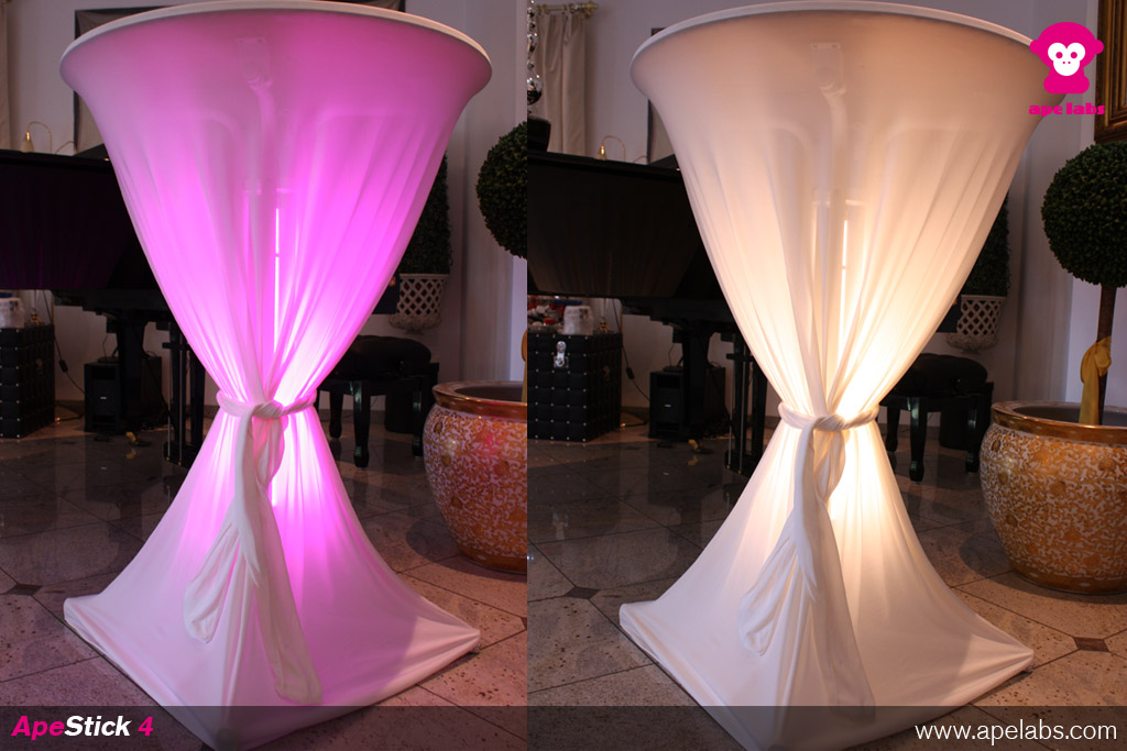The ApeStick 4 is an all-purpose battery LED lamp in the shape of a tube. It is equipped with a fixed battery with a run-time of at least 8 hours. Control the ApeStick4 with the Ape Labs 2.4GHz Remote Control, which can be used for all ape labs products, too. Professioal users can control the stick via wireless DMX with the W-APE wireless DMX transceiver or MobiLight 4.