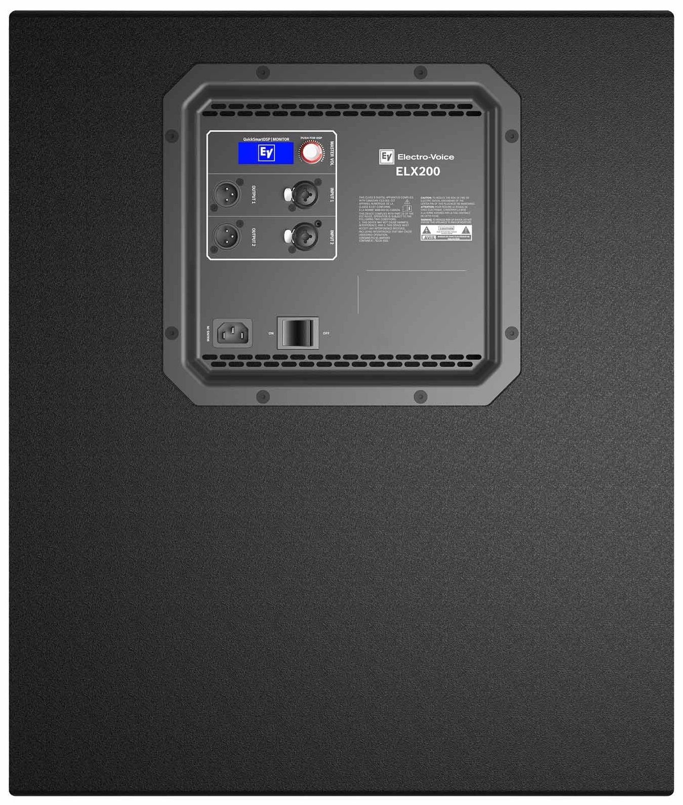 ELX200-18SP features high-efficiency Class-D power amplifiers (up to 1200 W) with integrated QuickSmartDSP, and delivers up to 132 dB SPL utilizing transducers designed and engineered by EV (18-inch EVS-18L woofer). Powered subwoofer models allow easy setup via three presets (Music, Live, Club), sub/top system-match crossovers, three-band EQ, five user-programmable presets (Store and Recall