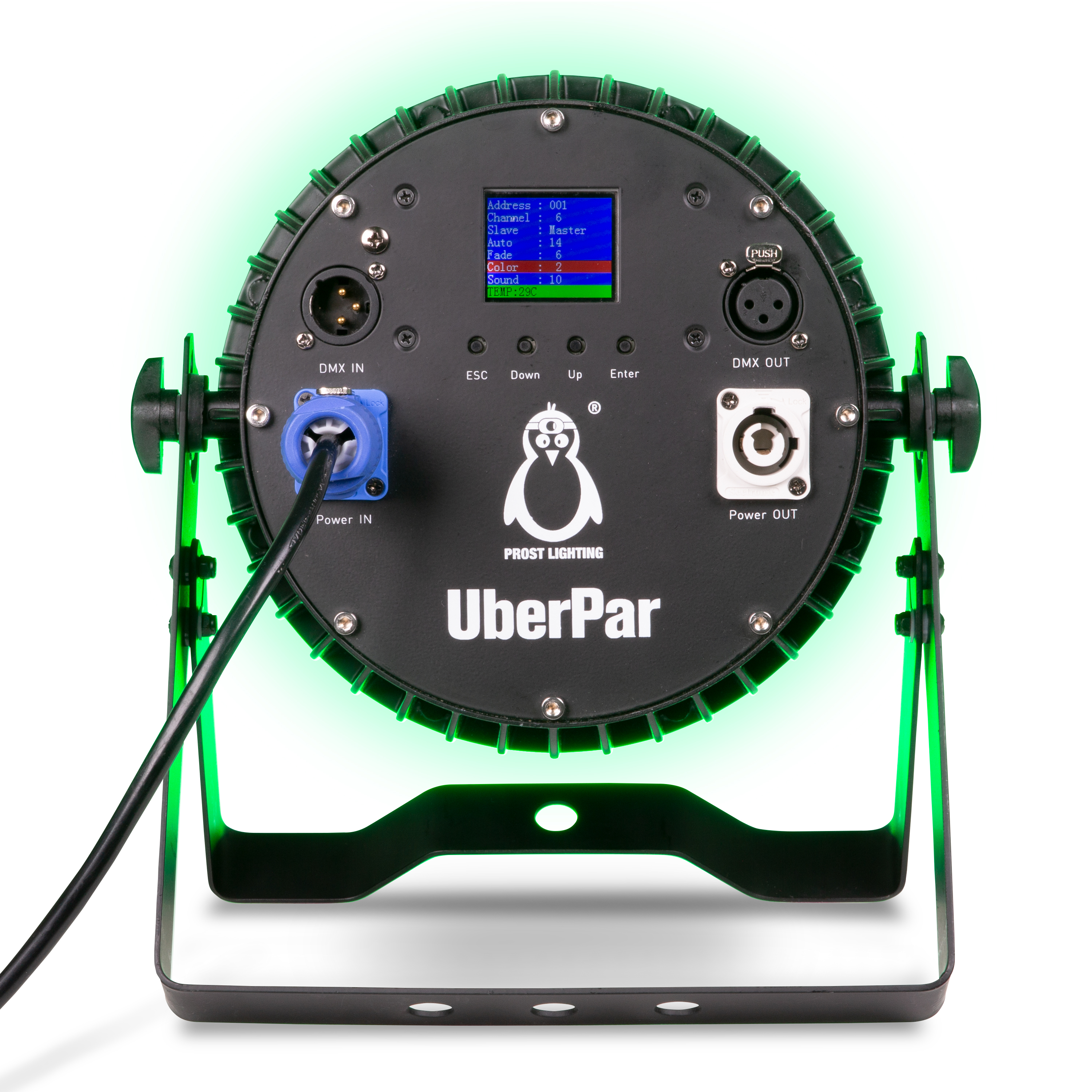 The Prost Lighting UberPar is an ultra-powerful, universal LED wash par for events, DJs, catering, and architectural applications (check out the UberPar IP for outdoor version). Sporting a total LED output of 216 Watts, this spotlight is the brightest in its class. The 12x 18 Watt Hex Color LEDs provide a lot of light! But donāt worry, you can always dim it down if necessary. Order this hex LED light today!