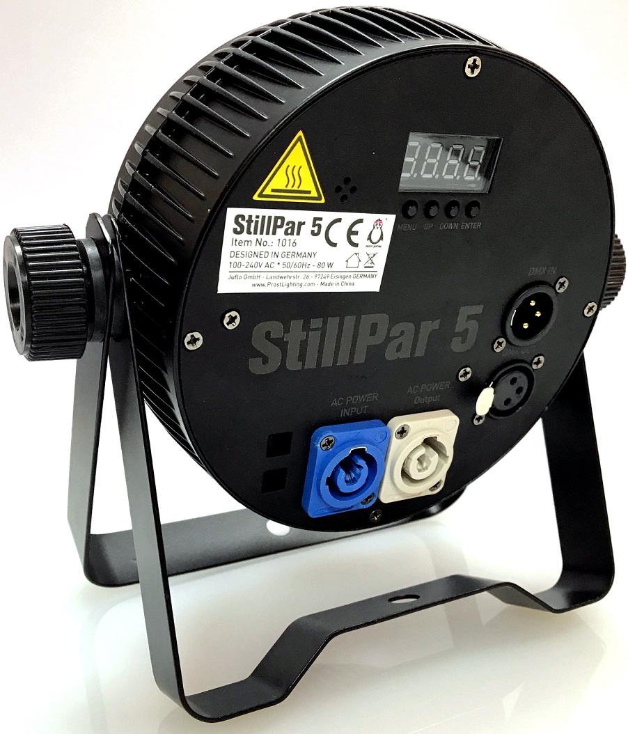 The Prost Lighting StillPar 5 is an ultra-powerful, universal LED wash par for events, DJs, catering, and architectural applications. Sporting a total LED output of 90 Watts, this spotlight is very powerful and offers tremendous value for the price. The 5x 18 Watt Hex Color LEDs provide a lot of light! But don’t worry, you can always dim it down if necessary.