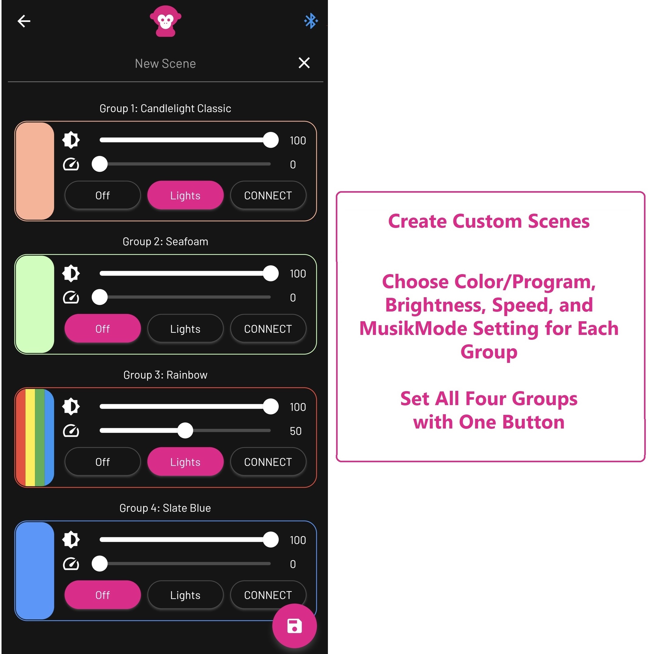 The device supports group control with the ability to manage one, two, three, or all four lighting groups simultaneously. For sound-reactive shows, you can use the W-App as a centralized microphone or allow each fixture to operate using its own mic. With support for transmitting up to four DMX universes using four W-App transceivers, scalability and creative freedom are at your fingertips.