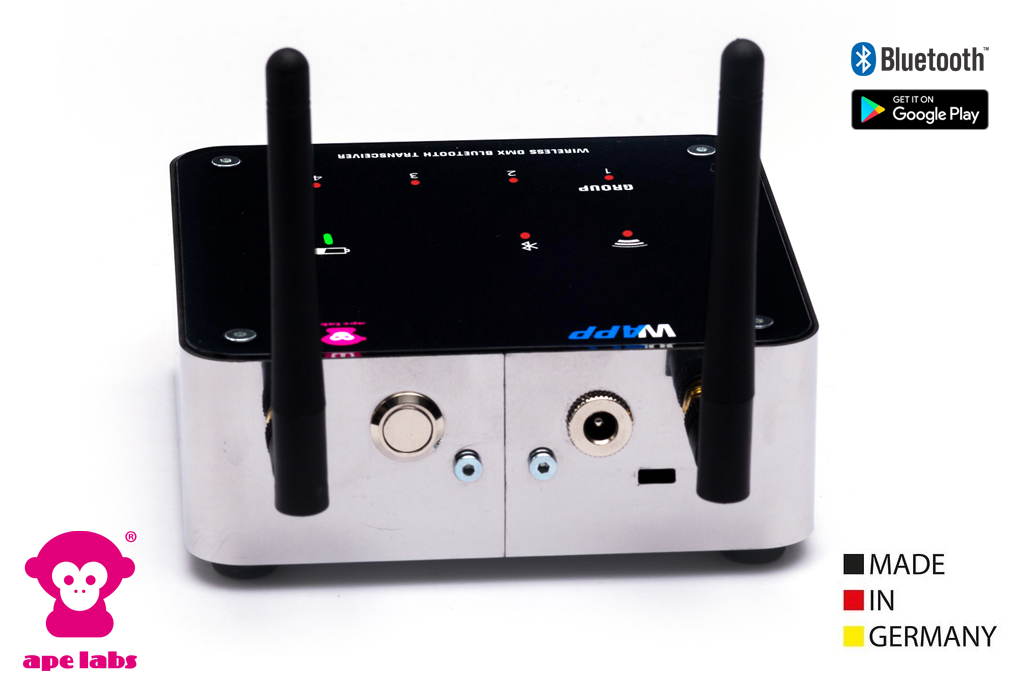 The Ape Labs W-App is your all-in-one DMX solution, engineered for seamless wireless lighting control using the free Ape Labs mobile app. Designed for DJs, mobile entertainers, and stage lighting professionals, this Bluetooth-based dongle connects with your iOS or Android device and communicates with Ape Labs fixtures over a 2.4GHz wireless signal.