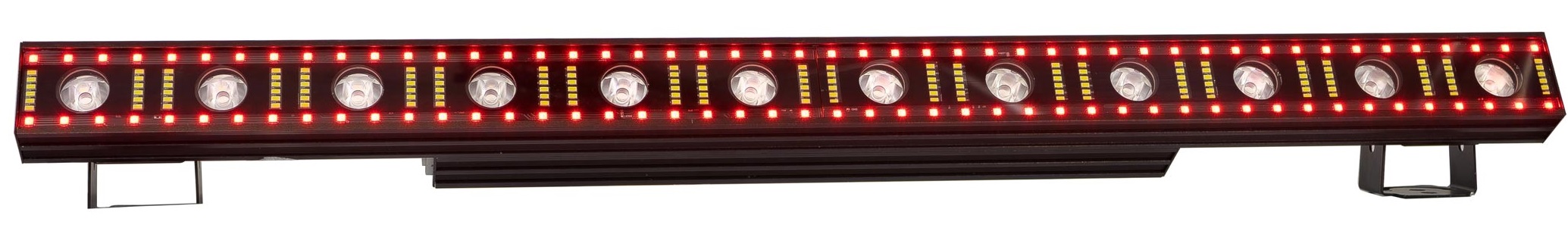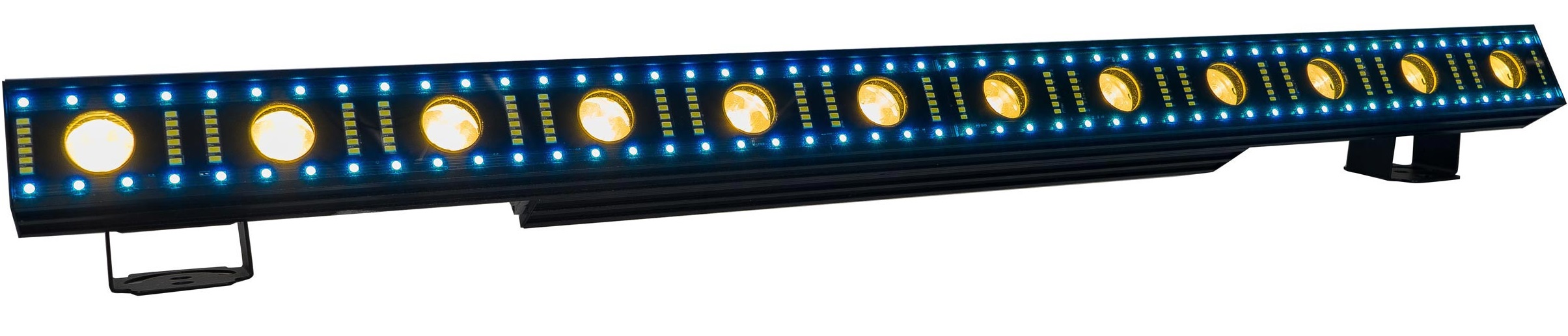 JMAZ PIXL FX BAR 5050 offers a versatile lighting solution for DJs, clubs, stages, and event venues looking to add high-energy beam and wash effects. At its core are 12 x 5W warm white LEDs (60W total) that create powerful beams, supported by 96 x 0.5W RGB SMD LEDs (48W) for color mixing and 144 x 0.5W cool white SMD LEDs (72W) for strobes and layered visuals.