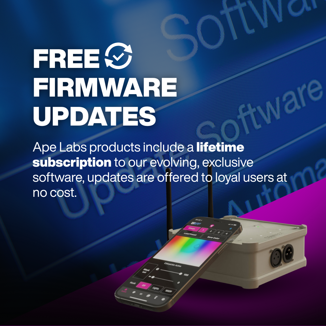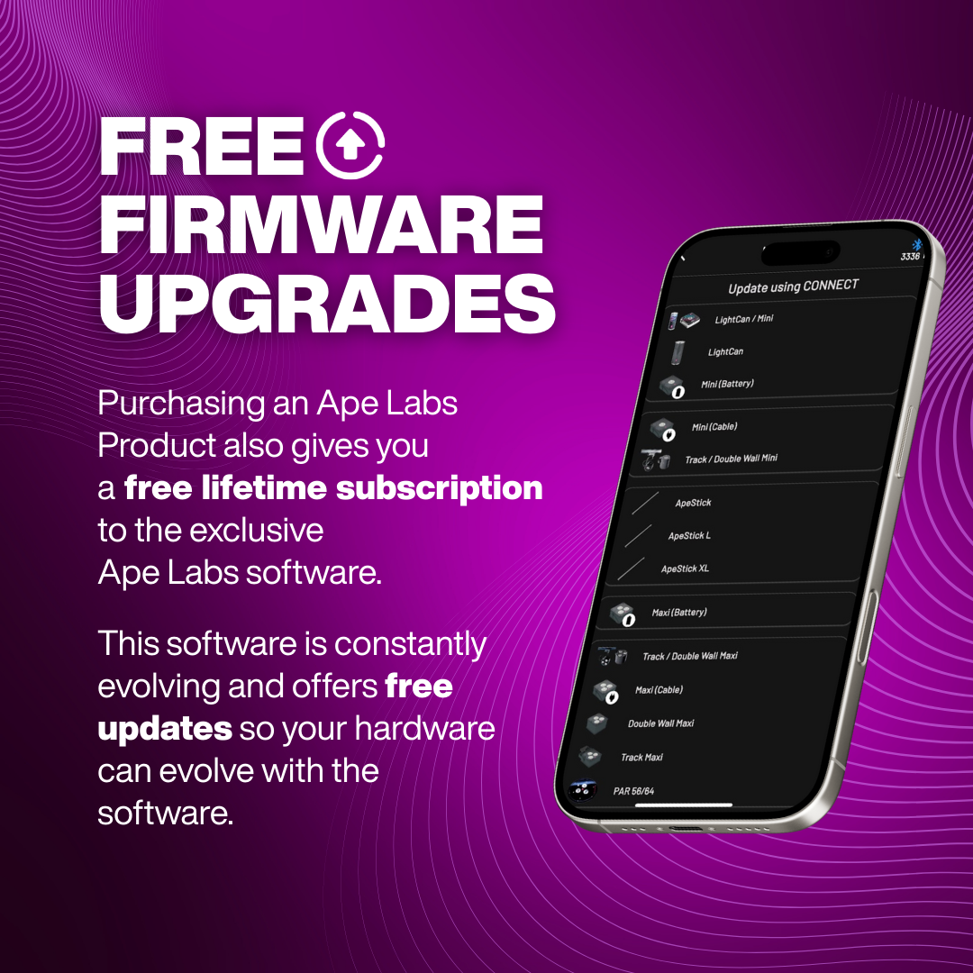 - Control all Ape Labs items with a single RF Remote or App (or standard DMX)