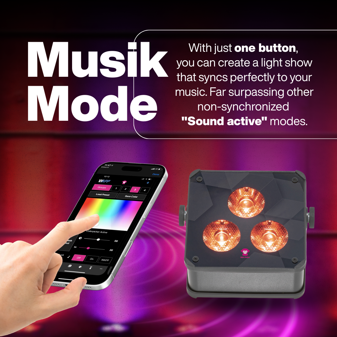 - MusikMode: 1-Button Light Show to Sound (Not 'Sound Active', a real light show)