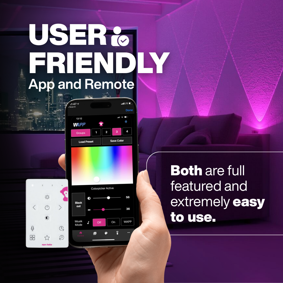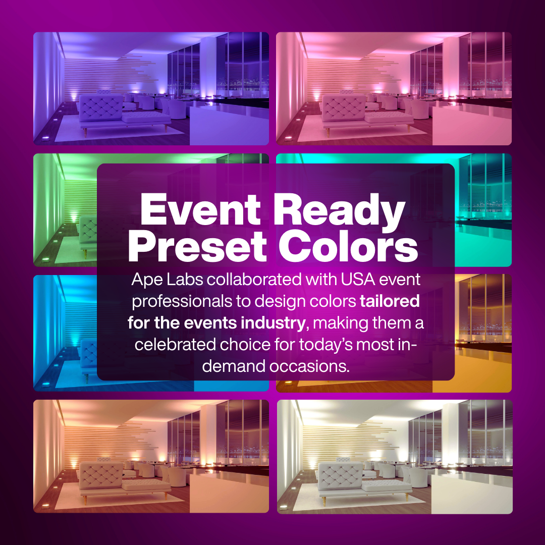 - Over 24 million customizable preset lighting combinations with ApeRemote
