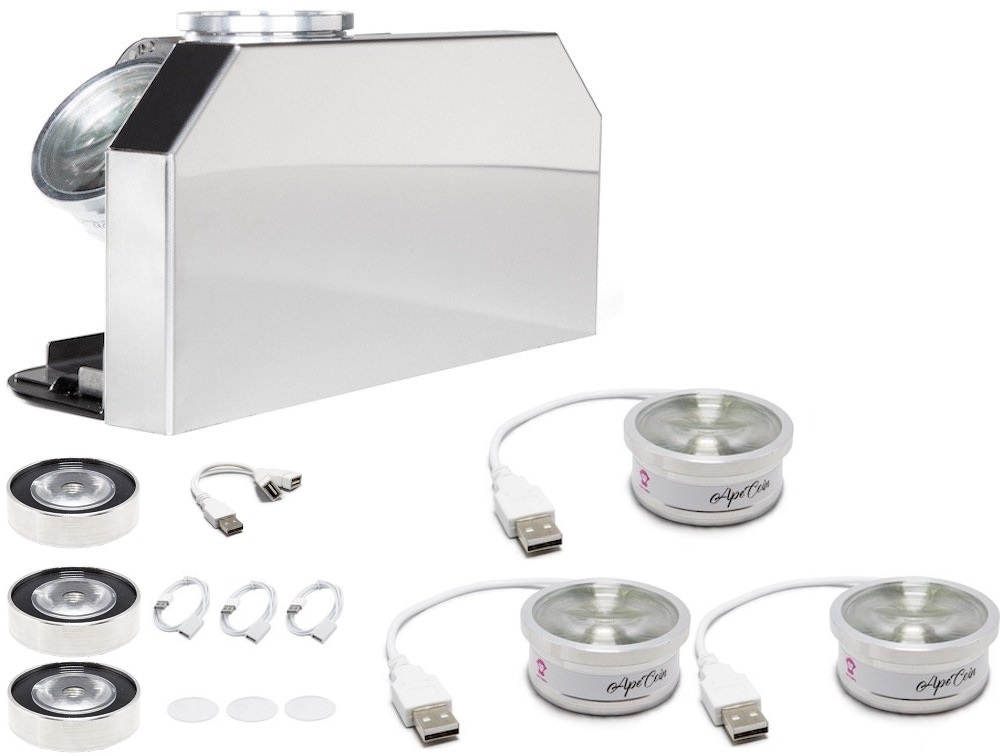 - Polished, metal housing for up to 3 Ape Labs Coin 2.0 lights