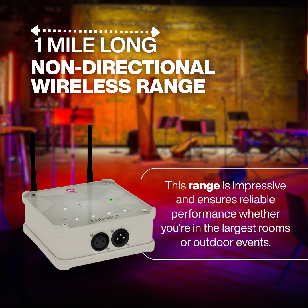 - 1-Mile Wireless Range with App or DMX, 200ft Non-Directional Range with Remote