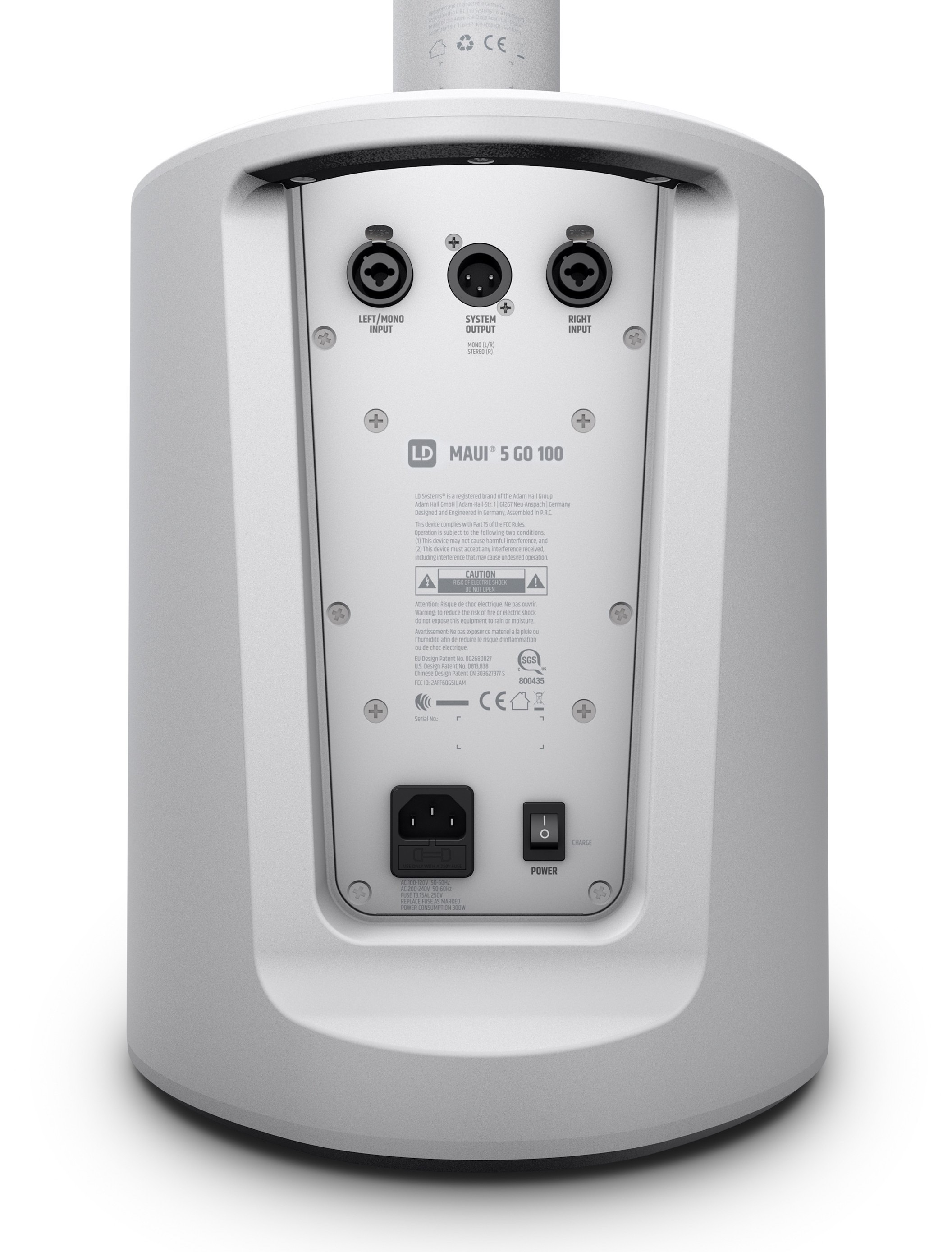 For unparalleled sound quality in all applications, the column system features LD Systems' LECC DSP with multi-band limiter, equalizer, compressor and crossover. The integrated 4-channel mixer provides separate volume controls for the input channels, sum and subwoofer as well as a variable high-frequency boost to facilitate fast and balanced adjustment to the sound. LD Systems’ Quick-Swap Technology® also facilitates immediate and simple battery replacement for practically unrestricted operating times for the MAUI® 5 GO 100.