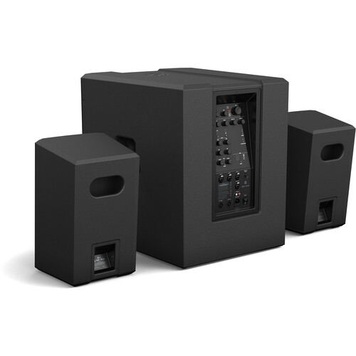 Audio professionals, musicians, and mobile entertainers in need of a compact 2.1 PA system will be impressed with the LD Systems DAVE 18 G4X, a powered 2.1 sound system with a 18" subwoofer and two 8" satellites that's well suited for a variety of applications, including live bands, DJs, backyard parties, singer/songwriters, bars, clubs, cafes, and more. The integrated 4000W peak amplifier powers the 18" woofer and the two satellites, which contain an 8" midrange driver and two 0.5" tweeters, providing a 30 Hz to 20 kHz (-10 dB) frequency response and a max SPL of 134 dB, plenty of volume to reach the back of the room.
