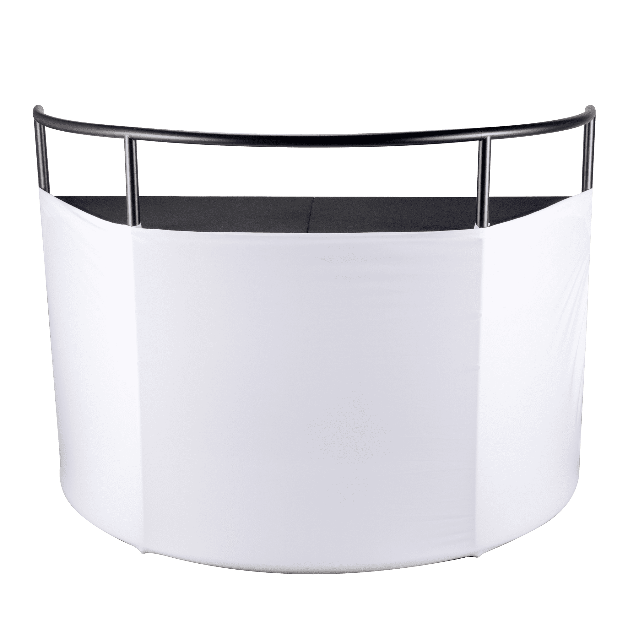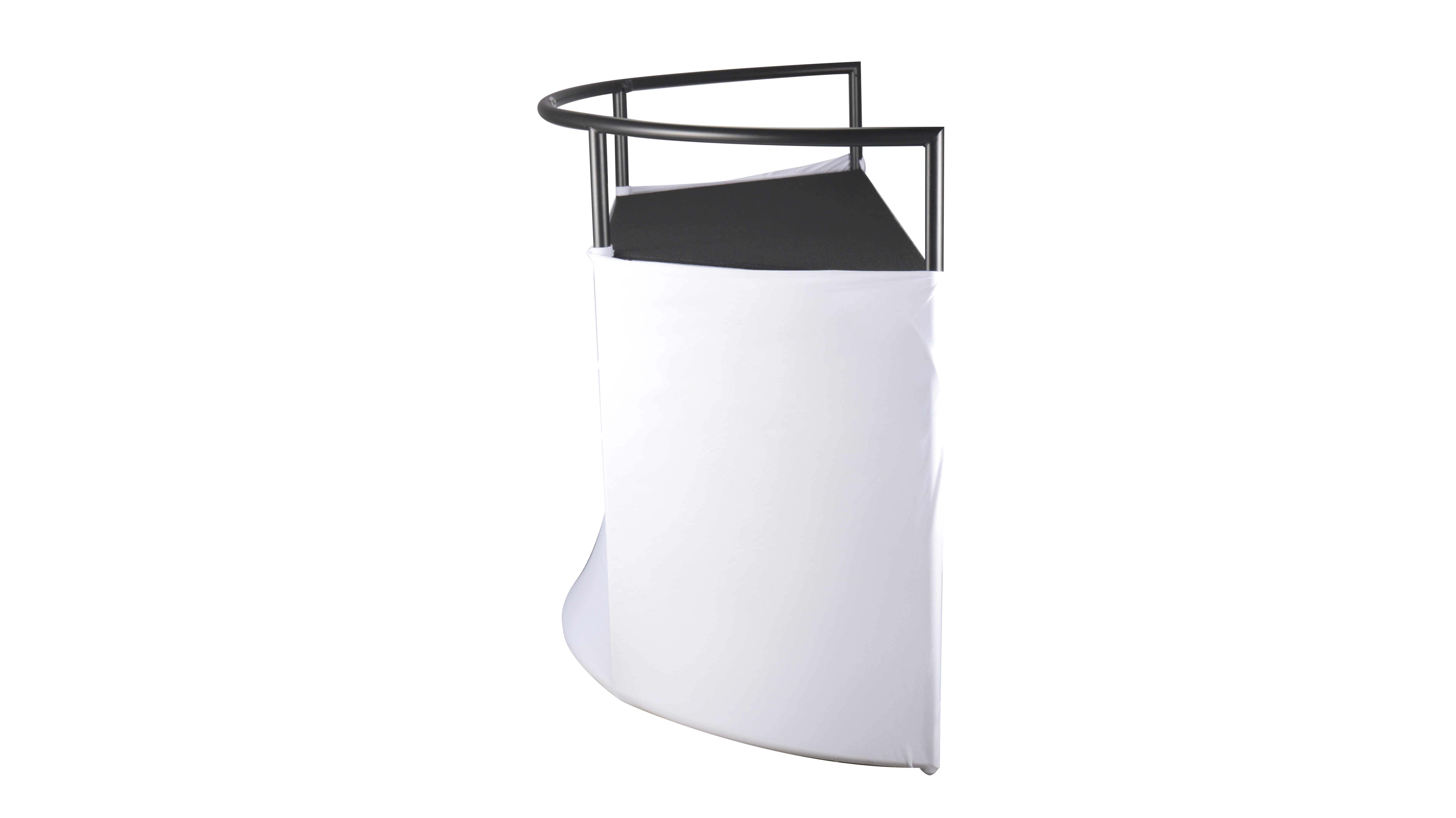 The standout feature of the Command Booth is its adaptability. With the included black and white scrims, you have the freedom to cover the booth entirely, from top to bottom, or create a stylish half-covered setup that allows you to engage with your audience while still maintaining an air of mystique. This versatile design lets you tailor your setup to match your preferences and the atmosphere of the event.