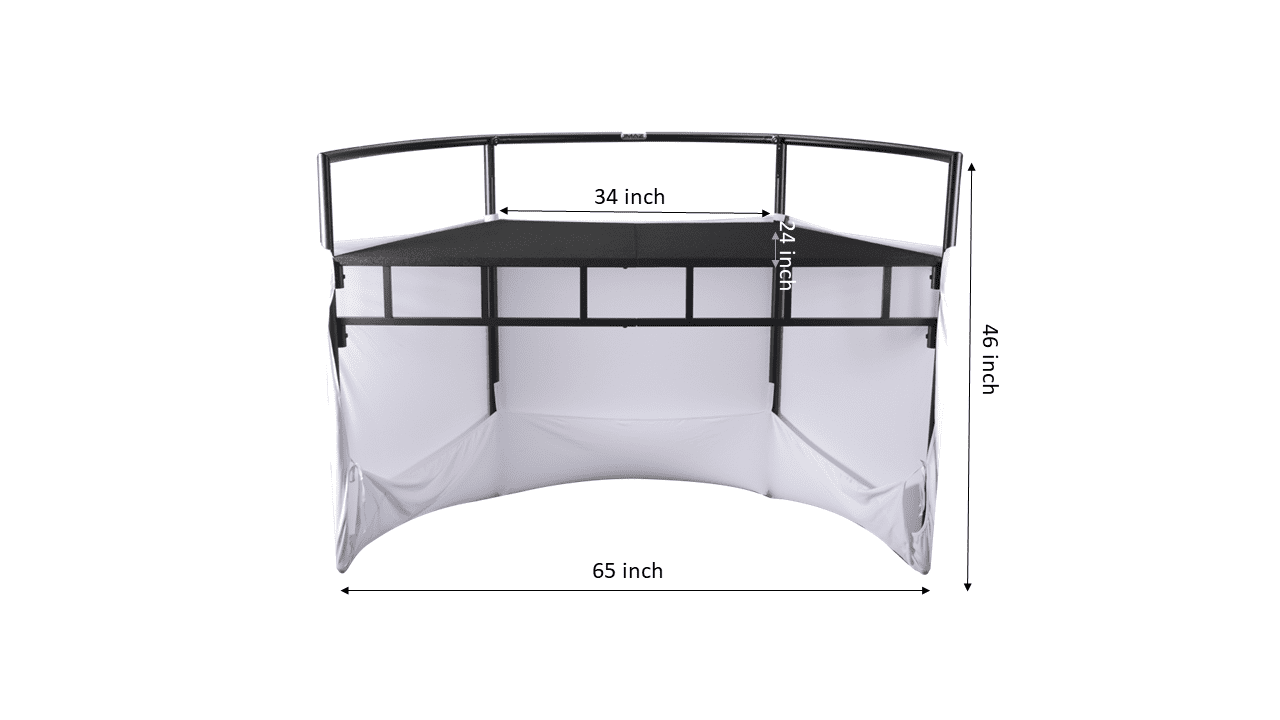 At the heart of the JMAZ Command Booth is a spacious table that can comfortably accommodate any DJ controller or gear you desire. Its sturdy construction is built from high-quality heavy-duty steel pipes, ensuring durability while remaining lightweight for easy transportation.